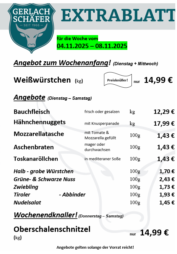 Wir danken für Ihr Verständnis!  Ihr Team der Metzgerei Gerlach- Schäfer   |